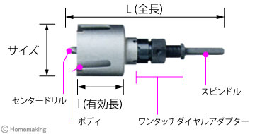 品番 | サイズ | 全長 | 有効長 | センタードリル |