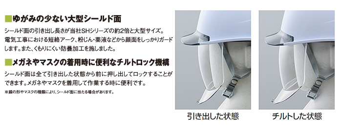 - 電気工事等における短絡アーク対策や、粉じん、飛来物などからの顔面保護に