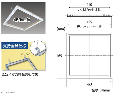 アルミ天井点検口 450角 ホワイト 1個: 他:SH-TT4508W
