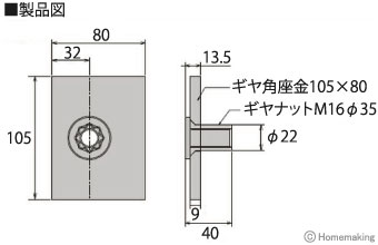 | 材質 | ギヤ角座金150×80/ JIS G 3101 SPHC ギヤナットM16φ35/ JIS G 3507-2 SWRCH6A 相当 |