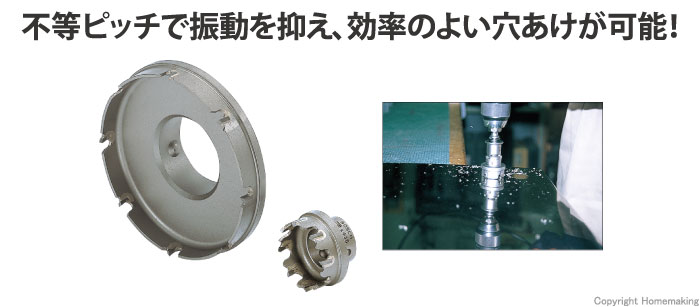不等ピッチで振動を抑え、効率のよい穴あけが可能!
