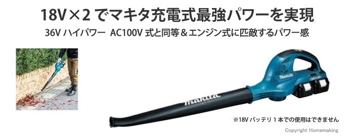 18V×2本=36Vで強力吹き飛ばし&低騒音!
