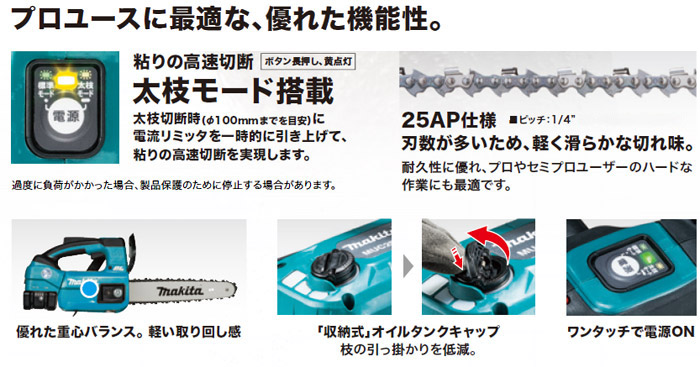 | 質量 | 3.0kg(バッテリ、チェーン刃、ガイドバー含む) | |