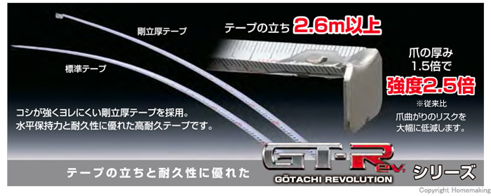 | GTR-G2550SZ | 25mm | 5m | 尺相当目盛 | 383g | テープ材質:スチール バネ材質:スチール ケース材質:ABS樹脂 |
