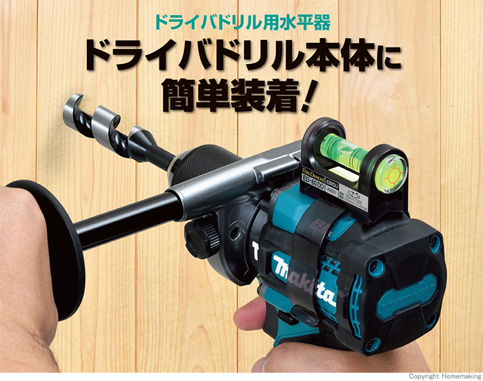 - 丸型気泡管で地面・天井に対し鉛直の確認と穴あけができます
