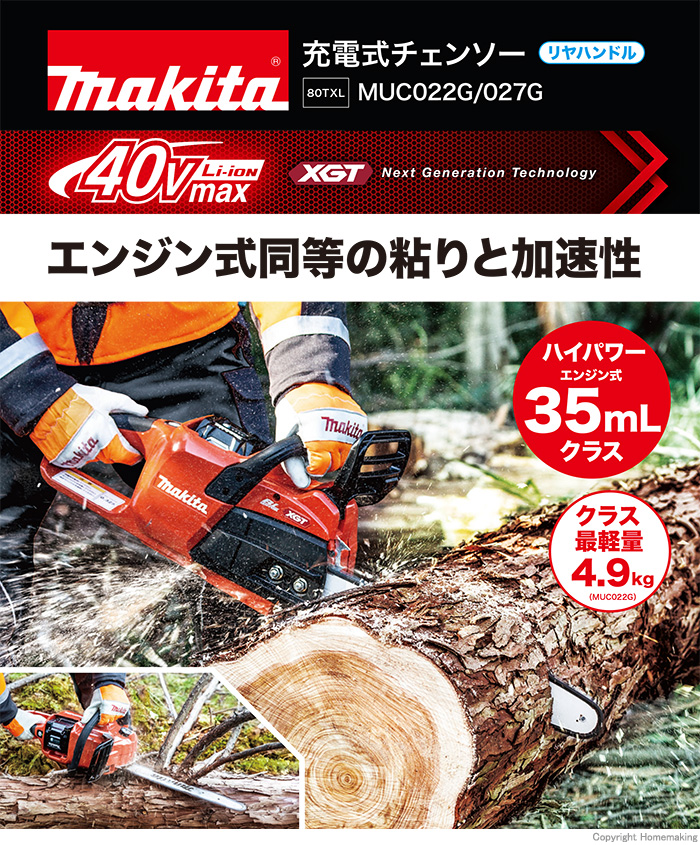 | 質量 | 4.9kg(チェーン刃、ガイドバー、バッテリBL4040F含む) | |