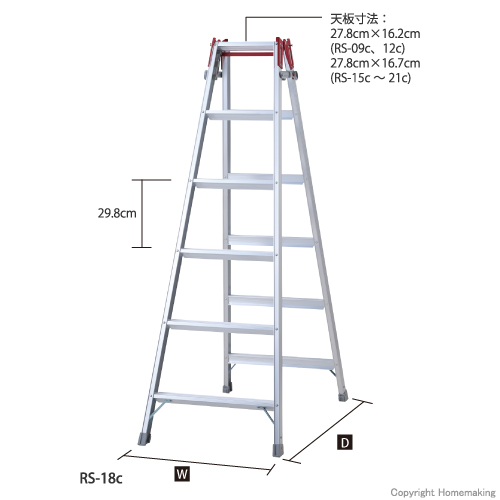 はしご兼用脚立 ワンタッチバー付幅広ステップ 3尺: 他:RS-09c