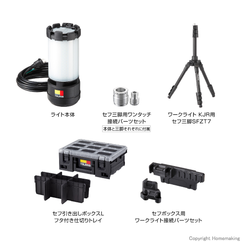 ワークライト KJR 10000lm セフ三脚 フタ付き仕切りトレイ ボックス接続パーツセット: 他:KJRZ10A-ACTFB