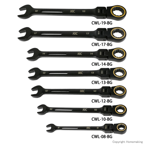 首振りラチェットコンビネーションレンチ 8mm (黒金): 他:CWL-08-BG