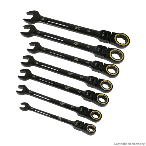 首振りラチェットコンビレンチ7本セット (黒金)::CWL-7S-BG