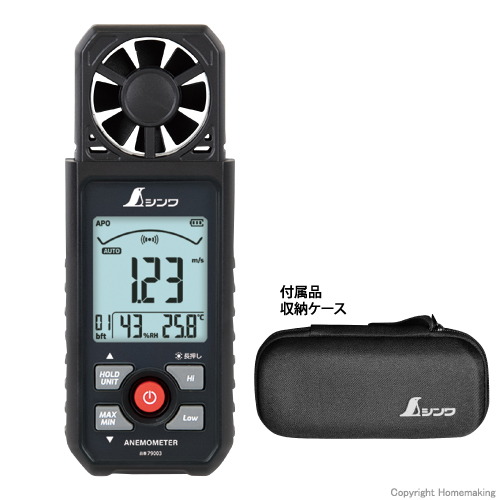 | 測定範囲 | 風速:0.40~30.00m/s 温度:0~45℃ 湿度:0~99%  |