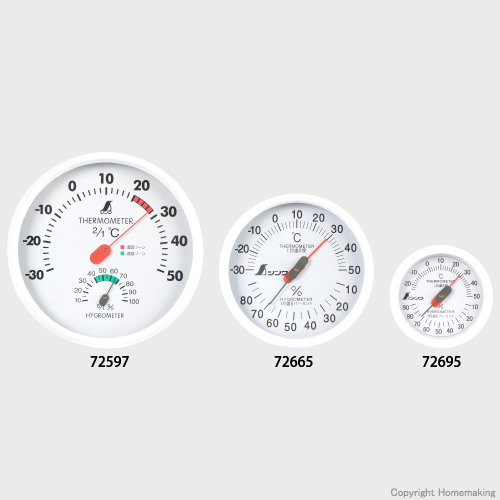 - 快適温度と快適湿度の目盛に色をつけて分かりやすくしてあります(72597のみ)