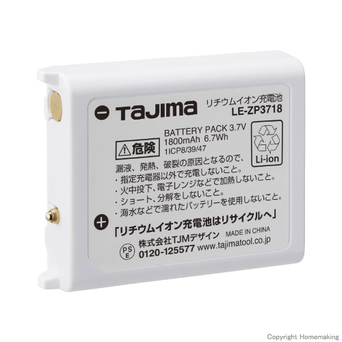 | LE-ZP3718 | 1800mAh | USB-micro B | 約4.5時間 | LEDライトCDシリーズ、 セフレーザー墨出し器シリーズ |