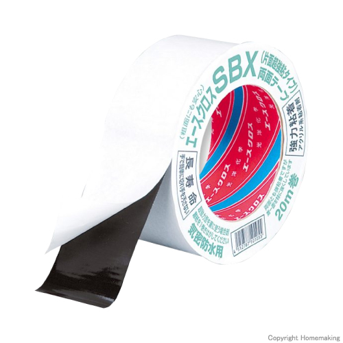 エースクロスSBX 気密防水テープ 第一貼付面超強力 両面 黒 50mm×20m 1箱(20巻入): 他:SBX