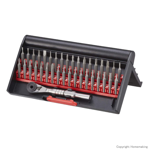 超精密、小ネジ専用ラチェット!36本のビットをセット!