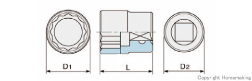 | 品番 | 対辺寸法 | D1 | D2 | L | ソケット形状 | 質量 |