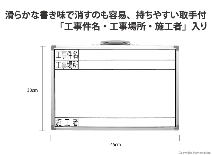 ホワイトボード GSW 「工事件名・工事場所・施工者」 横 30×45cm::77369