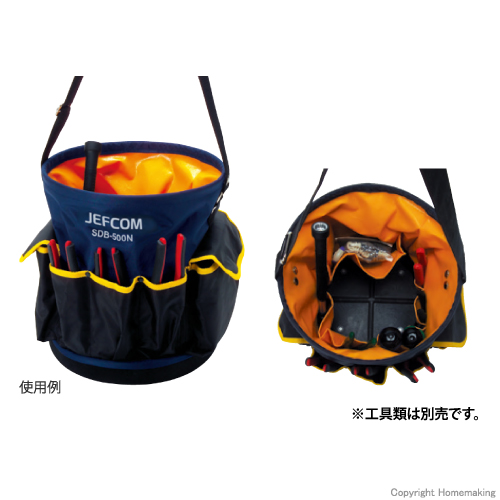 SDB-500N | φ300×高さ340mm | 外側:フタ付ポケット2個、ペンチサック3丁 内側:ツールサック、大型ポケット |