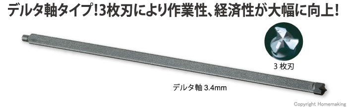 デルタ軸タイプ!3枚刃により作業性、経済性が大幅に向上!