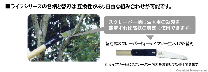- ライフシリーズの各柄と替刃は互換性があり、自由な組み合わせが可能