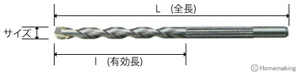 | 品番 | 刃先径サイズ | 全長 | 有効長 | 使用電動機 |